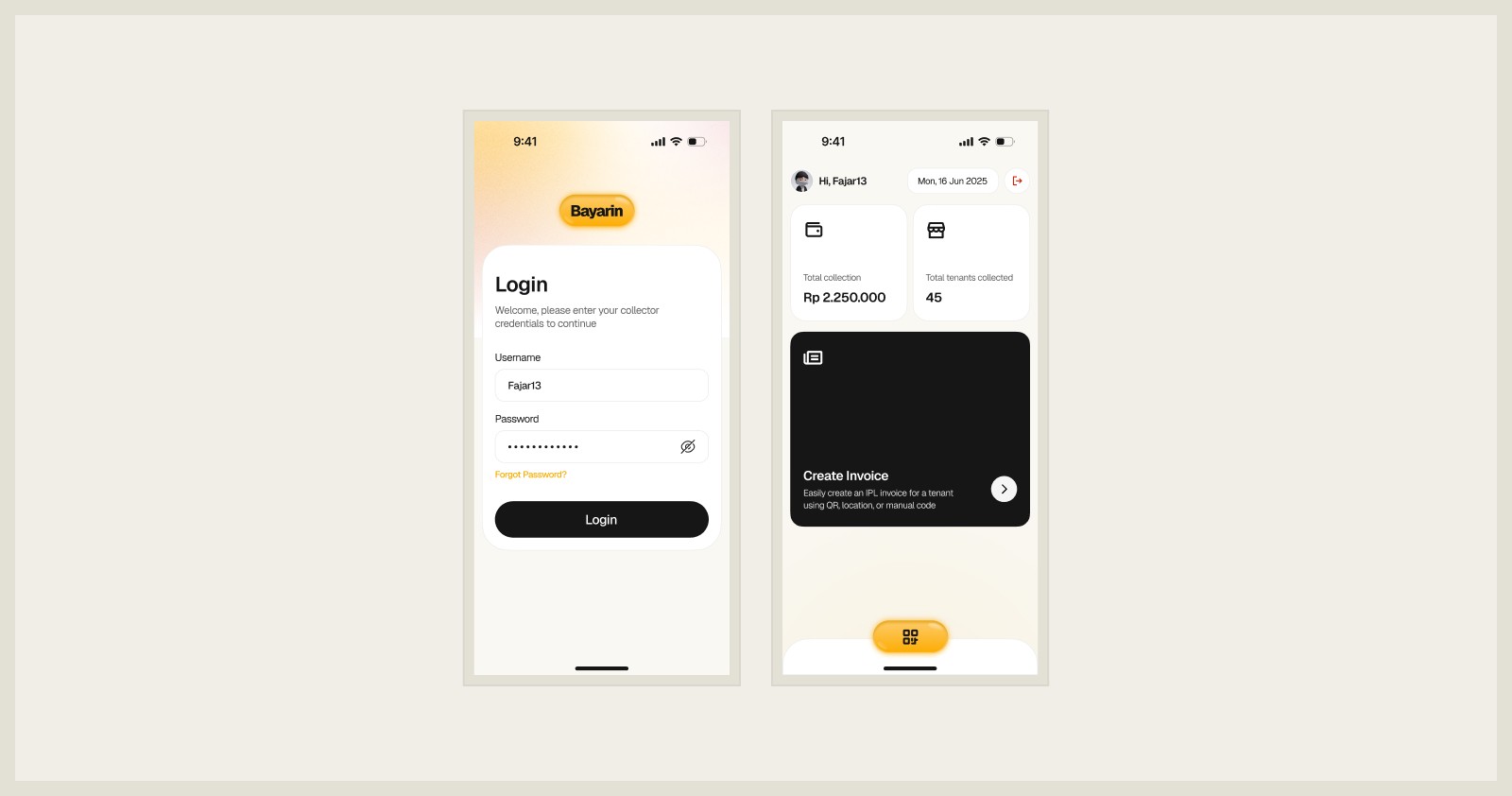 Imagine collecting monthly fees from dozens of tenants without carrying a notebook, calculator, or a pocket full of small change. Sounds better already, right? Wohoo! . That’s exactly what Bayarin does. It helps property owners and building managers collect monthly payments in a faster, cashless, and more organized way using a simple mobile app. No more chasing tenants or writing receipts by hand. Let me show you how I designed this app to make the process smoother for everyone involved.